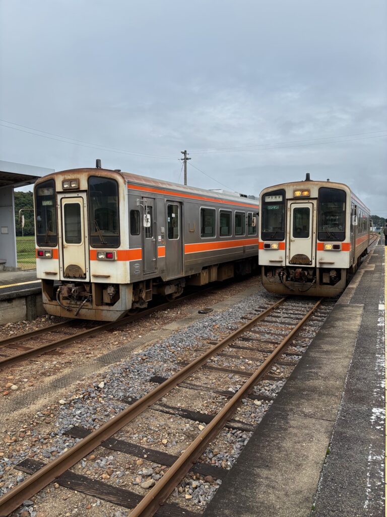 松阪から伊勢奥津まで、一日8往復なので、2時間に一本、しかもすべて気動車一両の運行です(写真1)。途中の家城駅を除きすべて無人駅。家城駅は白山高校(野球部が2018年の夏の甲子園に「下剋上球児」と呼ばれて出場しました)の最寄り駅のため、平日の朝夕は通学に使われますが、それ以外の時間帯はゆったりと走ります。家城から伊勢奥津の間は雲出川と並ぶように走り、車窓風景はなかなかのものです。特に春の桜の時期や秋の紅葉の時期はお勧めです。