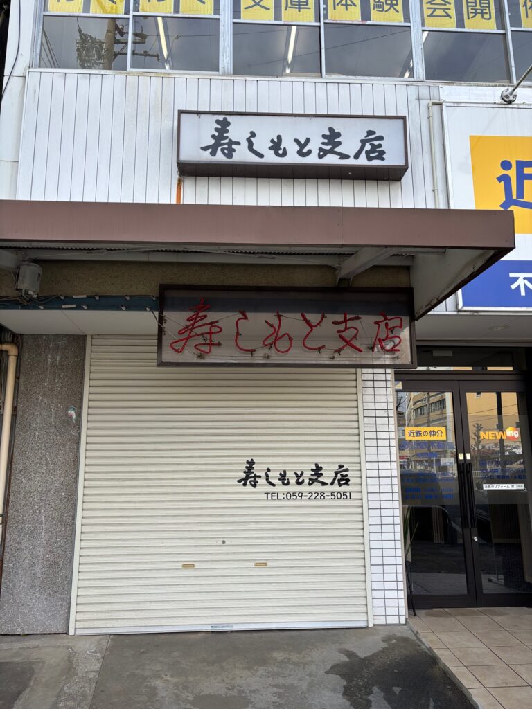 写真1は。津駅西口に出てロータリーの左手にある寿しもと支店。支店と言う限りは本店もあるのですが、大門にあった本店はすでに閉めているので、今は支店だけ残っていることになります。夜だけの営業なので、写真は昼間のものです。カウンターと小上がりで10名ほどしか入れない小さいお店なので、要予約。料理もお寿司も何を食べても外れがないのですが、その分、お値段は少々張ります。津市内のお寿司屋さんでは一番高いかも。でもそれだけのことはあるお店です。